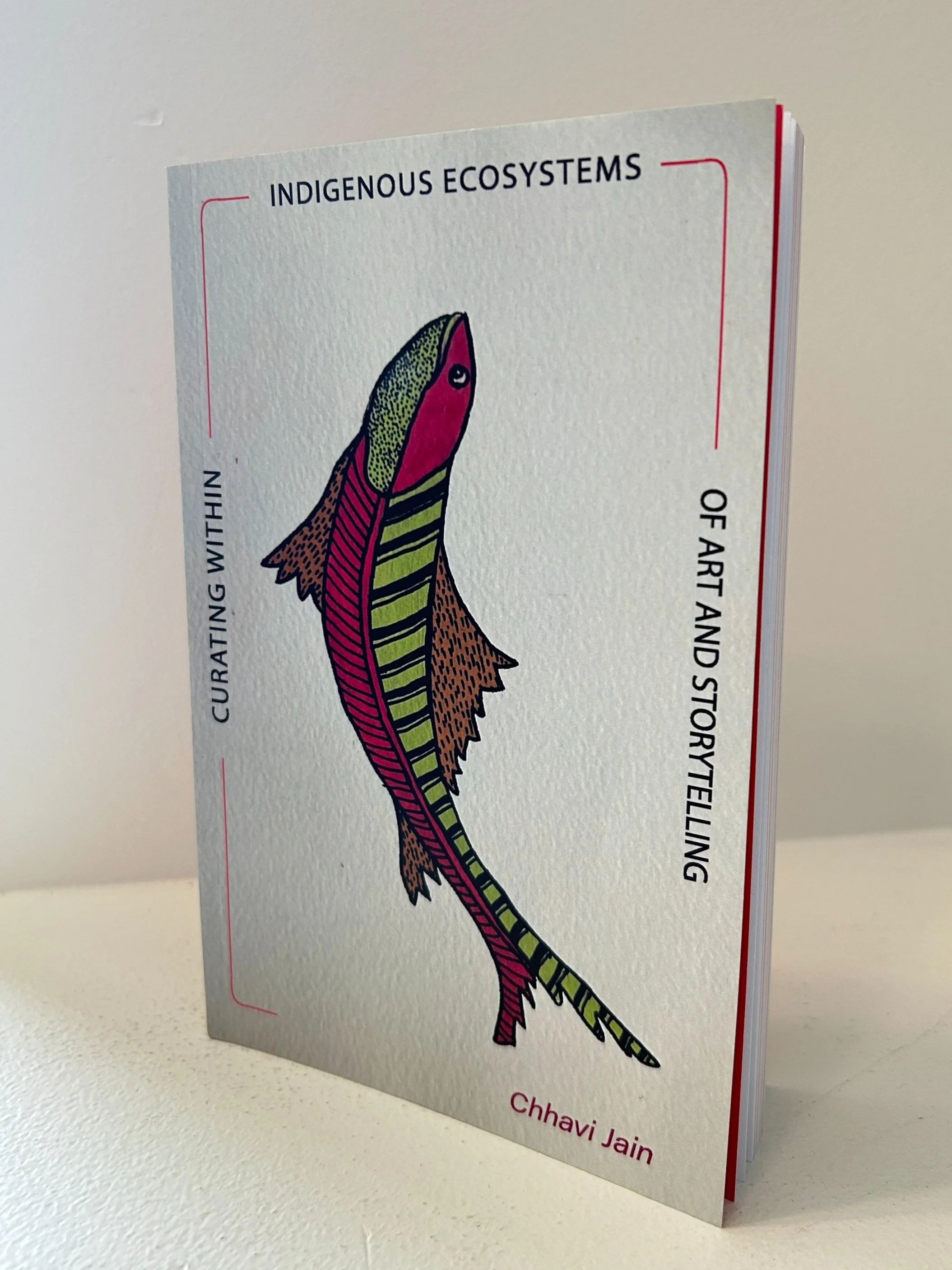 The core themes in the book triangulate between Indigeneity, Art and Curation. This extends 3 primary lines of inquiry which are about curation’s relationship with care, storytelling and community. The questions and curiosities expressed in the work emerge from my curatorial practice in India. Curation allows me to bring my training, experience and interests together in generative ways. It enables me to expand my knowledge on various subjects and devise my own definitions of best practices. I meditate on curation as the space in-between, the gap, the bridge, the interstice– between the artist and the viewer. When it comes to Indigenous art, I ask: Why are the markets not, in the least, equitable for contemporary and contemporary Indigenous practices in a postcolonial global world?